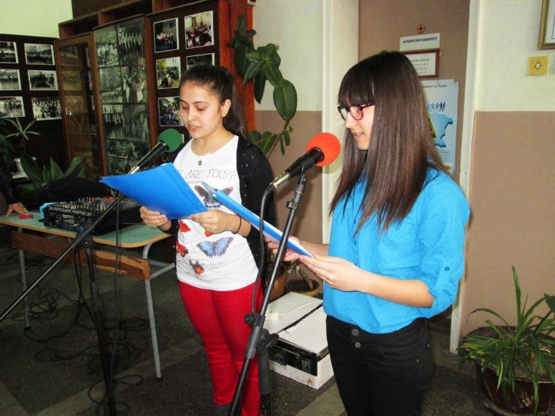 На 1 април в VII ОУ"Панайот Хитов" град Сливен учениците от Ученическия съвет поздравиха своите съученици като им подготвиха скеч на тема "Ученически неволи". Децата раздадоха на своите учители и съученици усмивки за добро настроение.