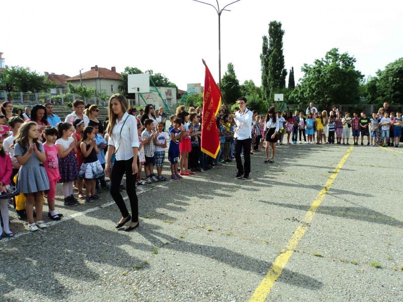 Тържеството в чест на солунските братя Кирил и Методий започна с издигане на националния флаг и внасяне на знамето на училището.
