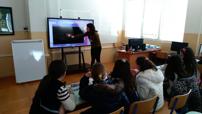 В час по английски език за Слънчевата система в IV б клас беше използван образователния презентационен софтуер за интерактивна дъска Moza Book . Използваните приложения Padlet, Kahoot, Glogster бяха изключително интересни в индивидуалната и групова работа с таблети за учениците.