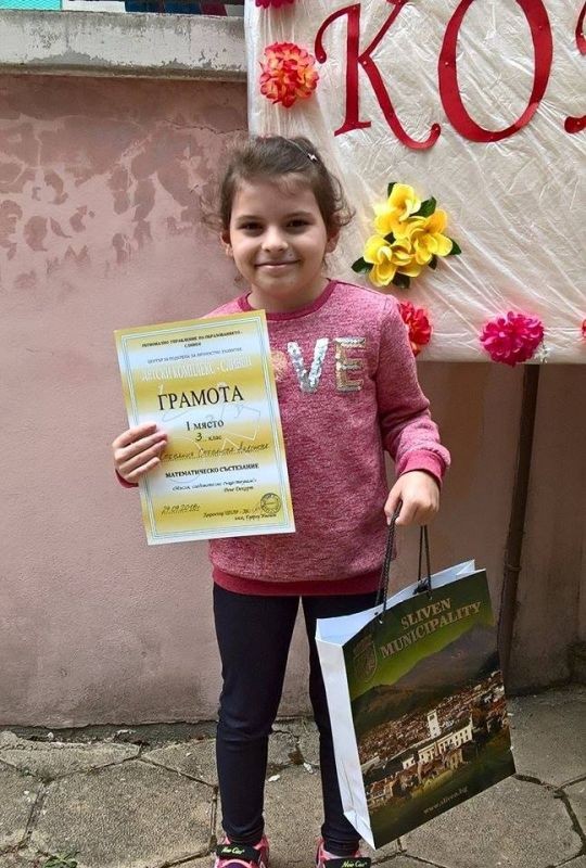 На 29.09.2018 година се проведе Математическо състезание " Мисля,следователно съществувам", организирано от Детски комплекс - Сливен. Стефания Стефанова от III а клас отново завоюва първо място. Гордеем се с теб, прекрасно дете!