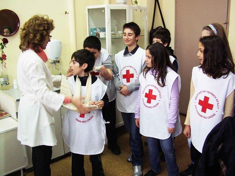 Учениците от секция „Скаутски лагер – първа помощ” показаха пред по-малките ученици и своите родители как се дава първа помощ при ПТП. Малките червенокръстци извадиха пострадал от автомобил, дадоха му първа помощ. След това спасиха мотоциклетист. Показаха как се спират различни видове кръвоизливи със стандартни и подръчни материали. Шинираха крайници и бинтоваха рани.